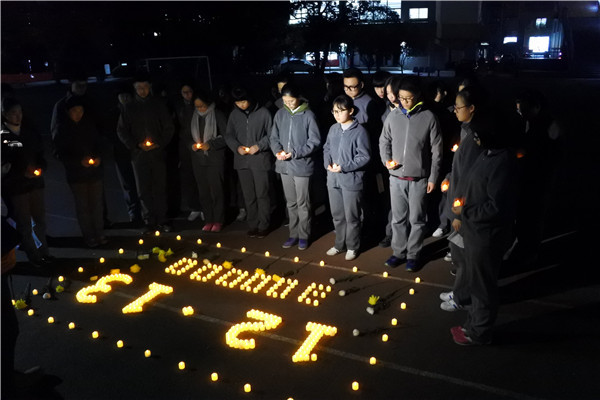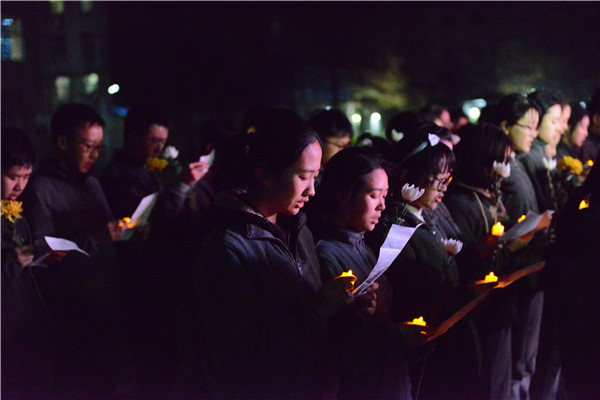 同学们点亮蜡烛,支支温暖的烛光,为南京大屠杀遇难同胞守灵,摇曳的烛光不仅寄托着后人的哀思,也寄托着大家对和平的祈望......