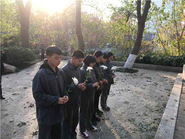 南京市第九中学的同学们利用周末的时间,身着素衣,寻访南京的各个南京大屠杀遇难同胞从藏地:上新河、清凉山、太平门、北极阁……他们在纪念碑前依次鞠躬,为遇难同胞献上鲜花,哀悼逝者。