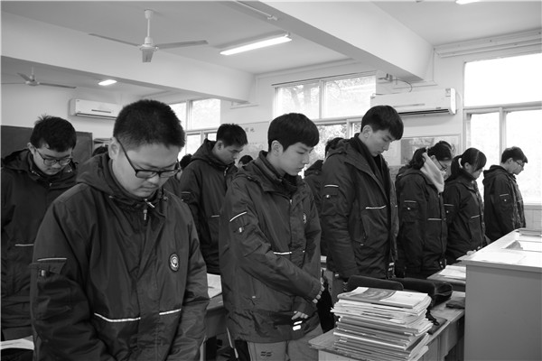 2.当警报声准时响起,还在上课的老师停下手中的笔,听课的同学们全体起立,操场上前一秒还在打球的少年们集体肃立,向南京大屠杀遇难同胞默哀。往日熙攘热闹的长江路变得静止。车辆缓缓停住,主动鸣笛致哀1分钟。行色匆匆的路人也停下脚步在寒风中低头默哀。