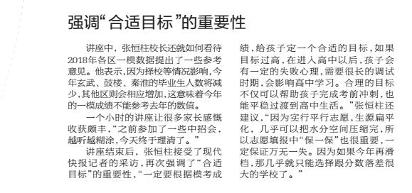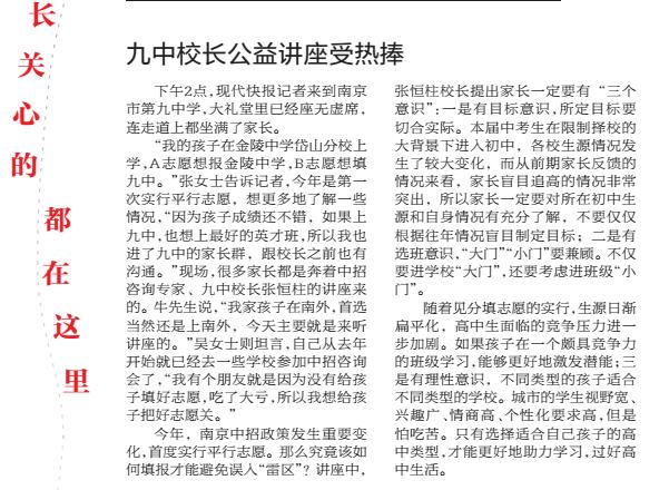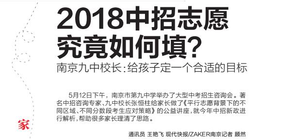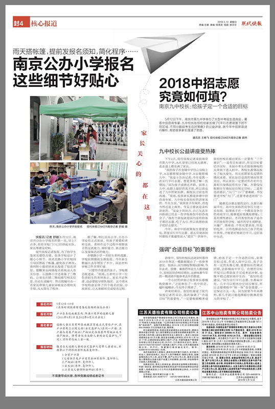 【2018.5.13现代快报封4】2018中招志愿究竟如何填?南京九中校长:给孩子定一个合适的目标