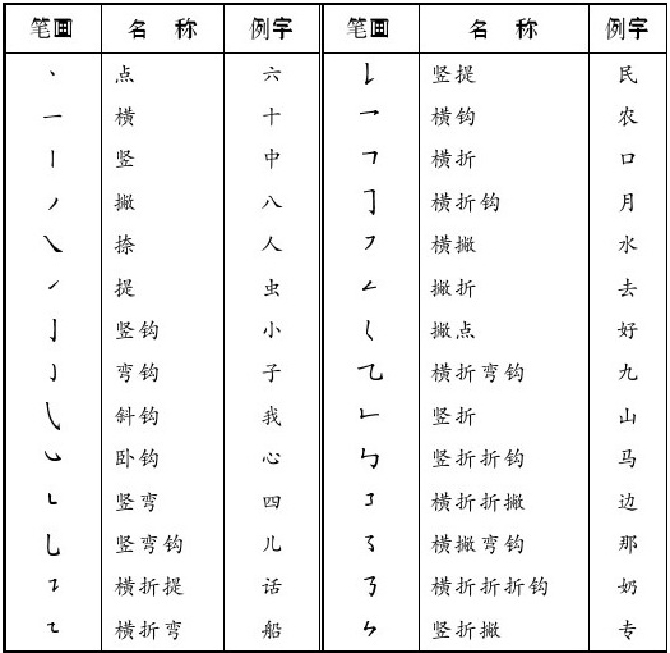 附录1 汉字笔画名称