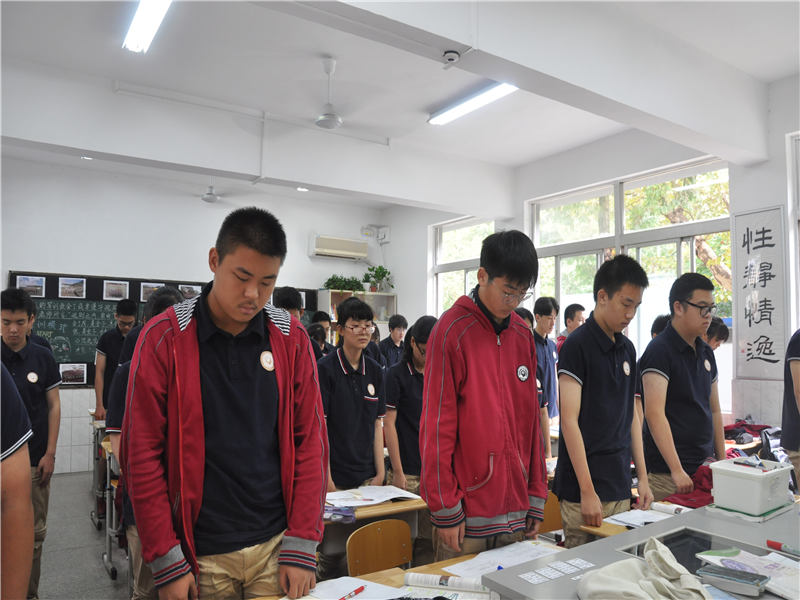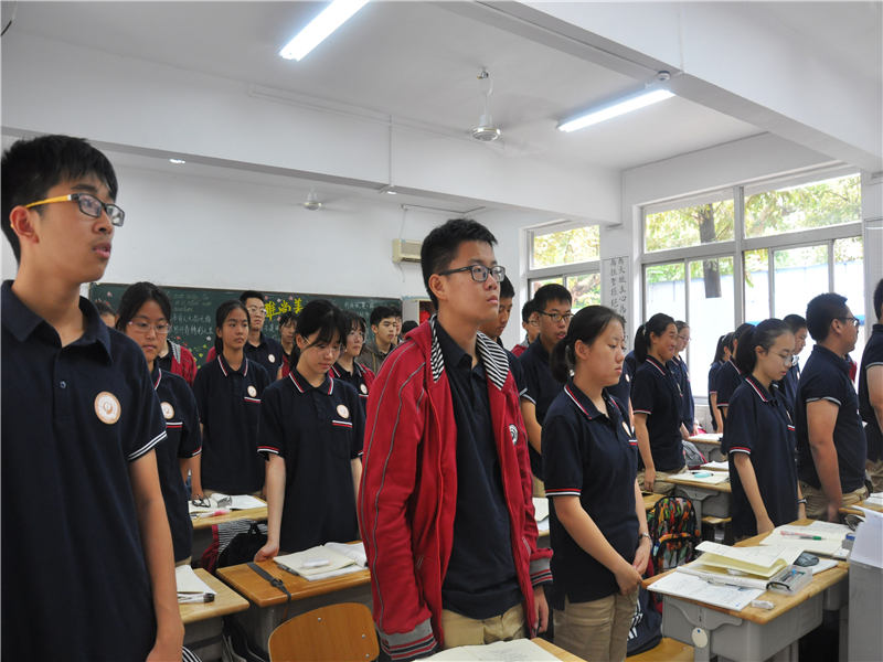 2018年9月18日上午10时,防空警报在南京城鸣响,南京市第九中学全体师生在听到警报后立即停下手中的工作,跟随广播站的指令起立默哀。