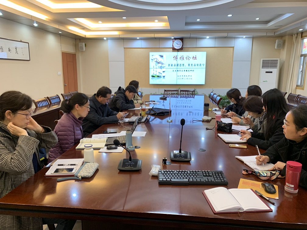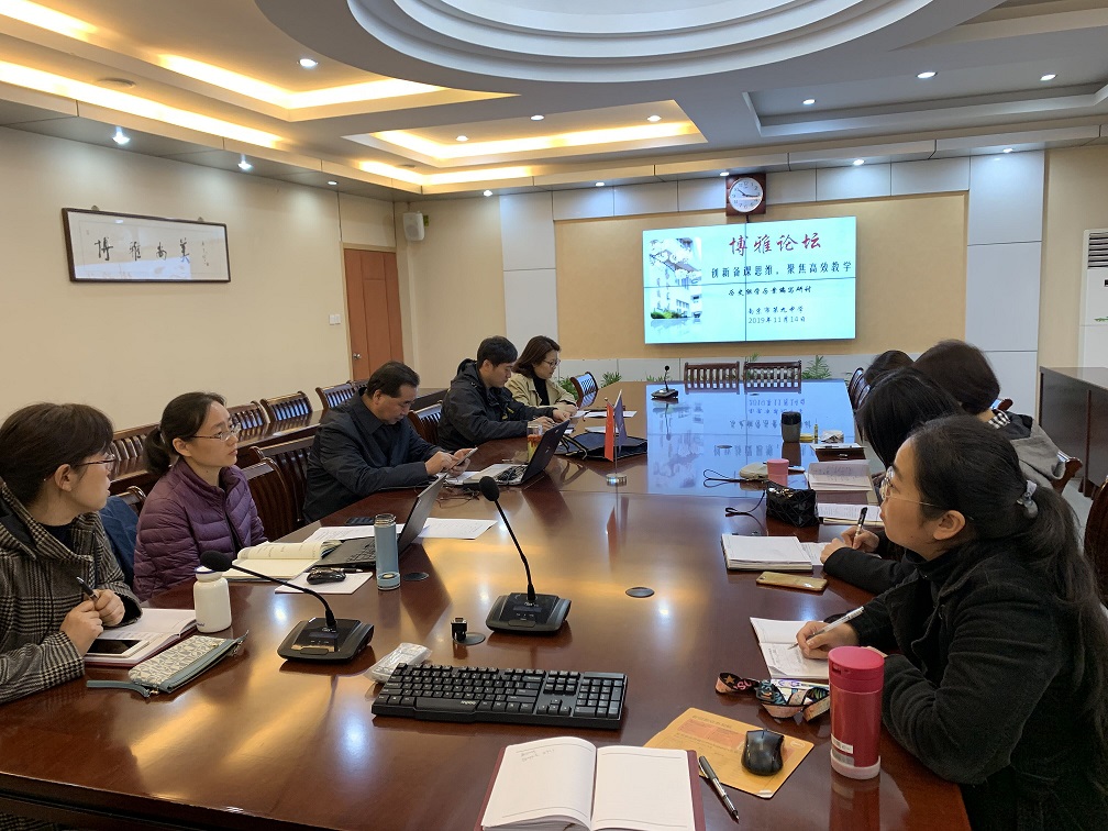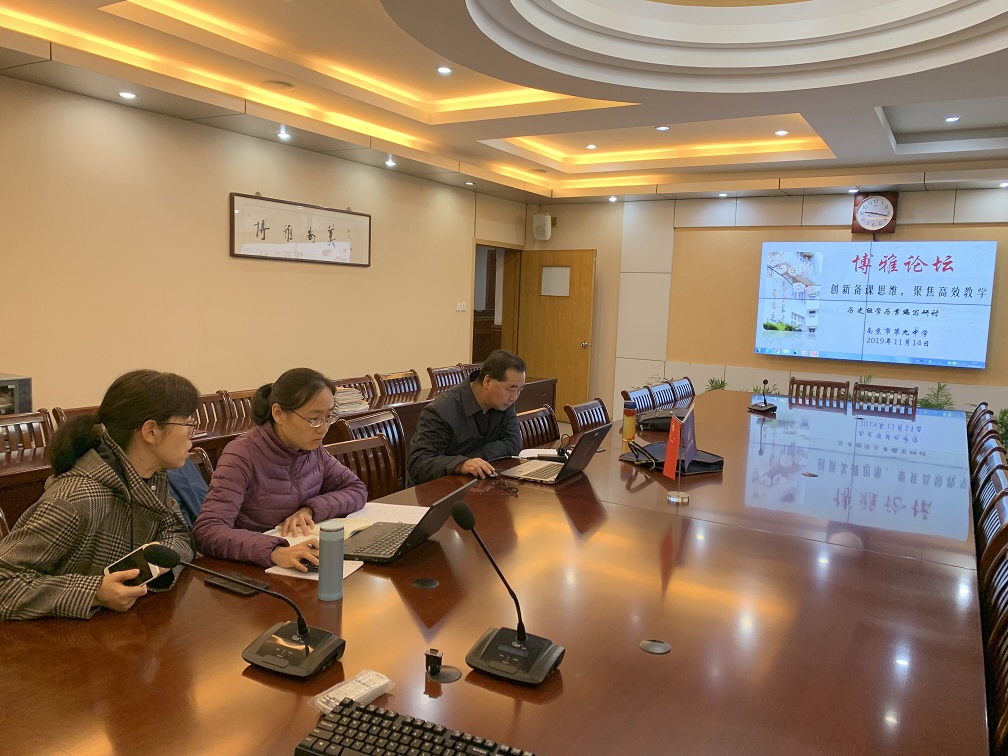 2019年11月14日,《创新备课思维,聚焦高效教学》历史组学历案编写研讨会在南京九中如期举行。南京市历史教研员袁廷虎老师、南京市玄武区教研员周萍老师莅临指导。周萍老师首先针对三个历史备课组上缴的历史学历案进行了详细的点评,表扬历史组学历案设计精巧、结构完整、内容充实、贴近学情,是符合学校要求的优秀学历案。袁廷虎老师进一步对三个历史备课组的日常教学工作和学历案编写工作进行了深入的指导。他指出,教学工作和学历案的编写工作都必须做到务实求真,要具体做到如下几个方面。第一,学科核心素养要体现出教学目标和课件中,贯穿整个教学活动。第二,情境设置要符合学情,旨在培养学生的学科核心素养。第三,多媒体信息技术要熟练运用,使课堂容量充足。第四,框架结构要理清模块间的逻辑联系。第五,反馈训练要精讲精练,及时巩固学习内容。历史组全体老师参加了本次研讨会,对会议内容做了认真的记录,并以备课组为单位进行了小组讨论,反思了教学工作和学历案编写工作中的问题,对标找差,同时制定了下阶段的教学计划。