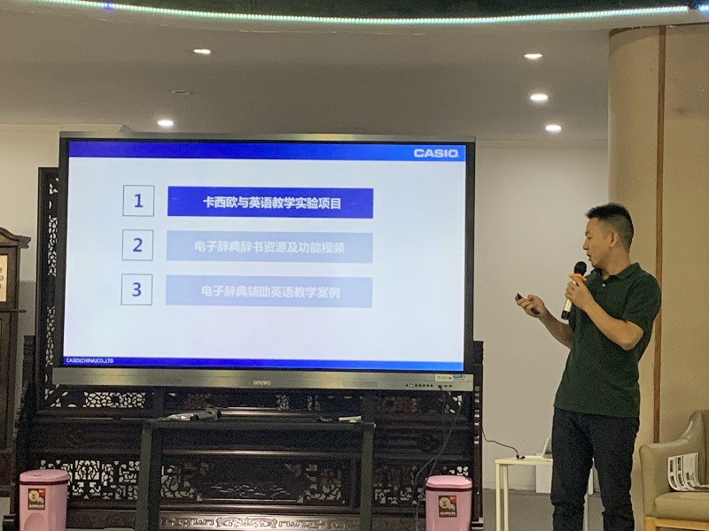 2019年9月30日,桑校参与我校VR智能英语情景会话系统课程基地建设筹备会,特邀美吉和卡西欧公司前来向老师们介绍技术应用。