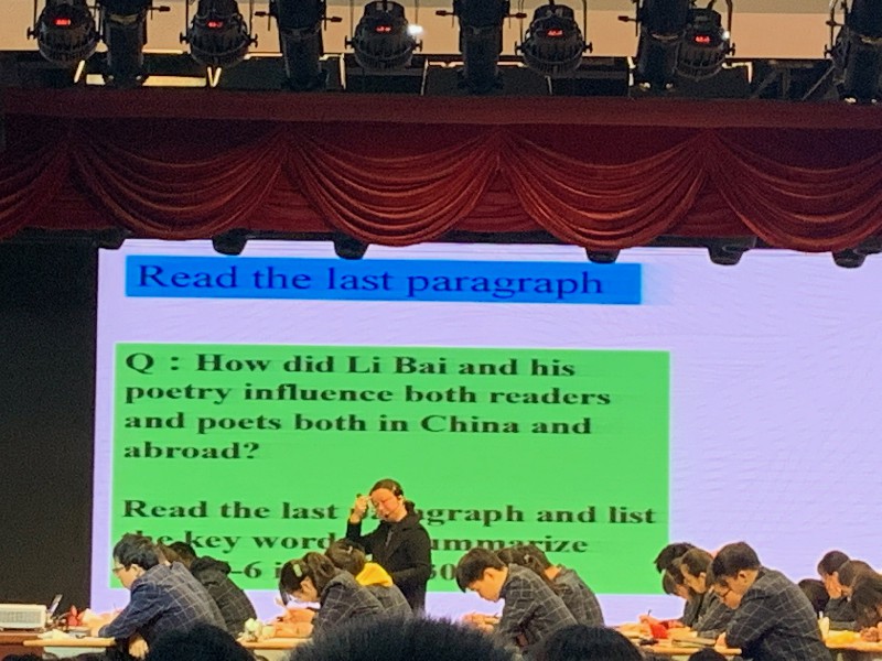在课堂观摩环节,燕子矶中学的王华老师给我们带来了一节生动活泼,文化气息满满的概要写作课“LiBai and his romantic poetry”. 让我们对新课标指导下的新教材有了更深刻的认识。