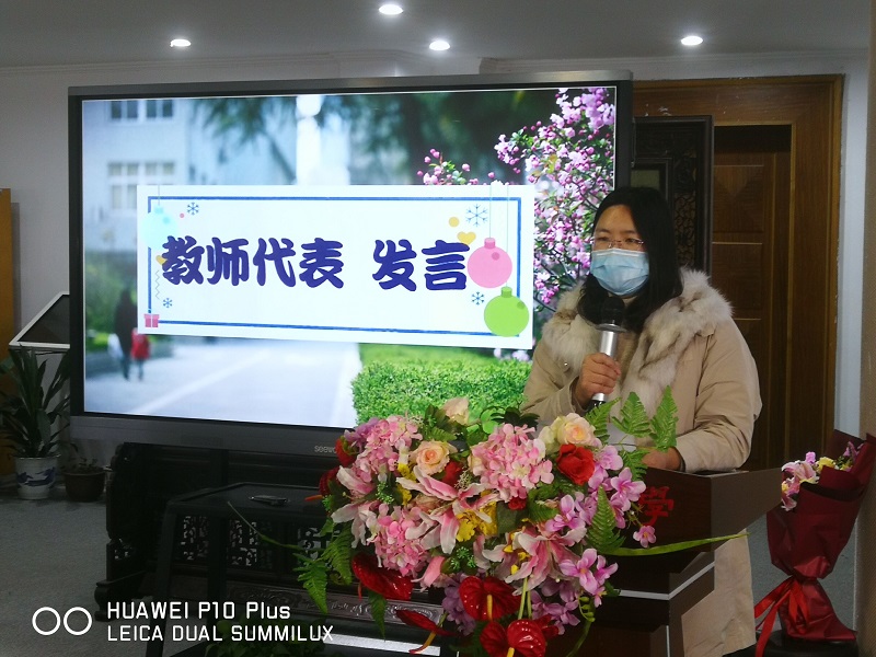 在成人仪式的最后,丁忆梦老师向所有同学介绍了一位前方疫情战士——邹磊。邹医生从湖北一线发来视频,表达了战胜疫情的坚定信心和对高三学生的激励与祝福。校长张恒柱老师向邹医生未婚妻——高三年级班主任匡欣怡老师献花表示敬意。年级部还向生日和成人礼同期的高三14班汤妮同学送上了生日祝福,并借此祝所有高三同学成人快乐。