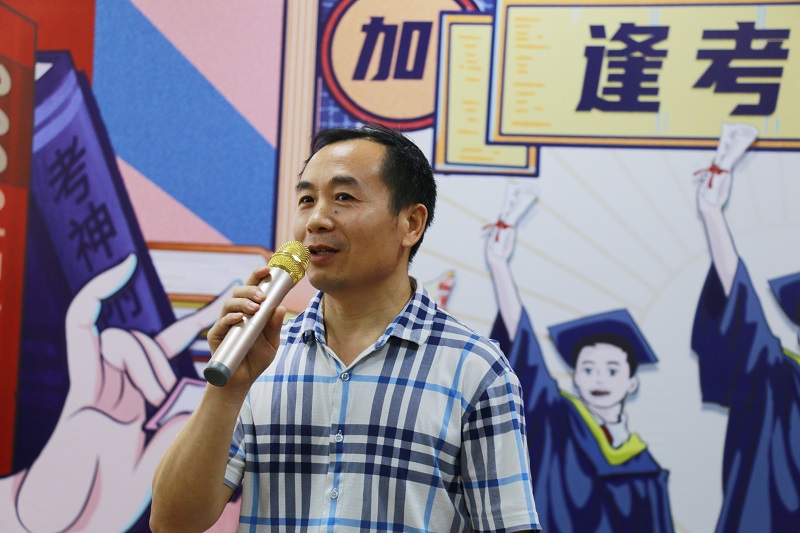 林啟红校长代表学校向同学们表达了真诚的祝福,为同学们一直以来的拼搏精神点赞,祝愿同学们金榜题名,梦圆九中。年级部主任金玉明老师也代表高三年级部为即将走上高考考场的同学们加油鼓劲,祝各位必胜客们出战必胜。教师代表朱海青老师则用幽默和深情点燃了全场的气氛。同学们备受鼓舞,感恩有一路无私奉献的老师,有一众一起拼搏的战友。