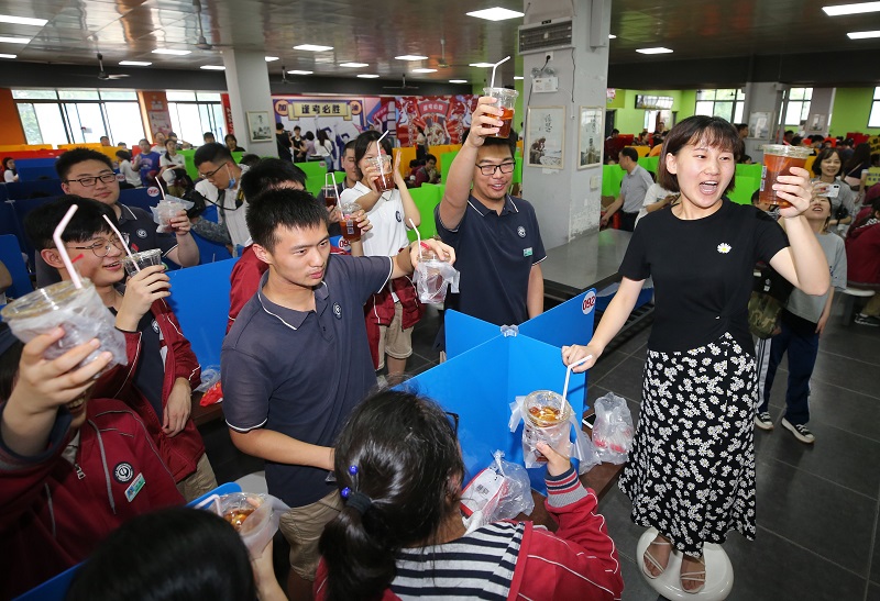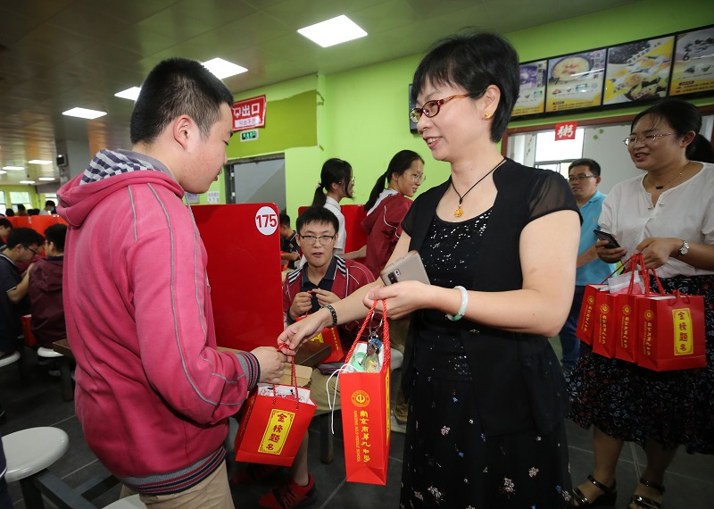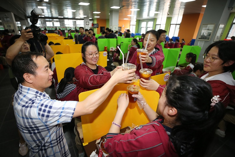 “必胜餐厅”活动,是南京市第九中学“为高三加油”活动的一部分。九中被誉为南京市最温情的学校,每年都会精心设计活动,为即将出征的高三学子加油鼓劲。林啟红校长“专注过程,看淡结果”的温情叮嘱,高三班主任们《无悔高三 青春万岁》的深情朗诵,都给同学们留下了深刻印象。九中老师给高三学生送粽子和糕点的创意抖音,更是收获了88万次观看的点击量,赢得了一致的赞誉。(丁忆梦)