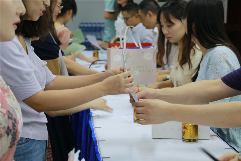 拜师仪式在音乐声中开始,师傅们在台上就坐,46位徒弟分批上台向自己的师傅拜师,敬上一罐“红牛”,祝愿师傅们“又红又牛”,并送上了贴心的小礼物,感谢师傅在今后一年中对自己的辛苦指导;师傅们则赠给徒弟一本书籍,师傅们都特意在扉页上为徒弟写下了赠言,勉励徒弟们在教育教学中不断成长。
