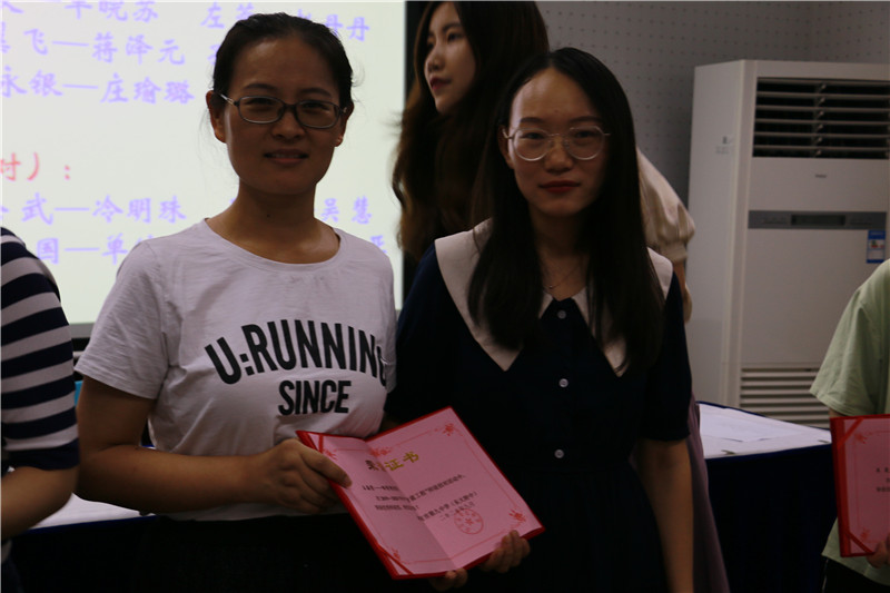 学校对在去年的师徒结对活动中表现优异的15对师徒进行表彰,校领导们代表学校向这十五对师徒颁发了荣誉证书。匡欣怡老师作为优秀徒弟中的代表,对这三年中自己在三位师傅陈珍年、丁忆梦、王秀林老师的悉心指导下,在教学和教育方面都不断获得成长的情况做了精彩的总结。