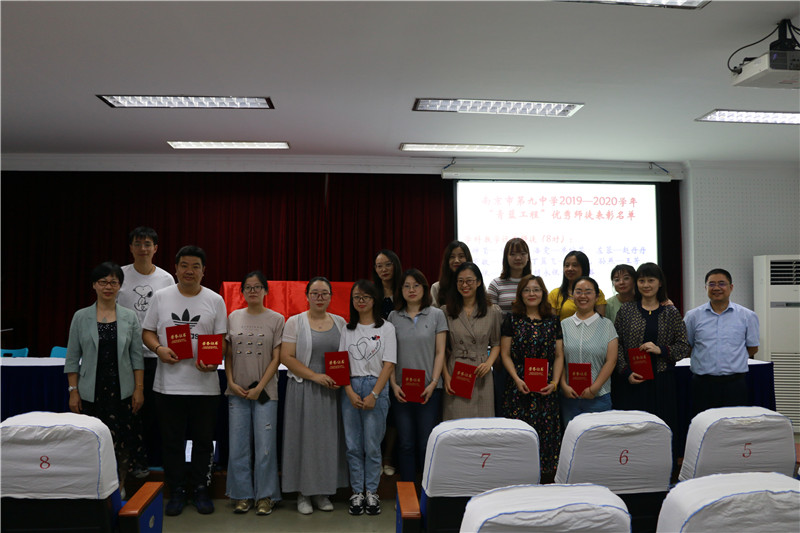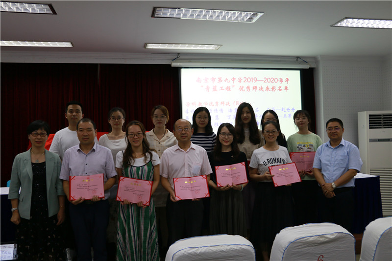 2020年9月16日下午,南京市第九中学举行了“青蓝工程”师徒结对暨名师工作室揭牌仪式,30位骨干教师与30位首轮教学的青年教师师徒结对,13位优秀班主任与16位青年班主任师徒结对。师傅中有多位特级教师和市区学科带头人。