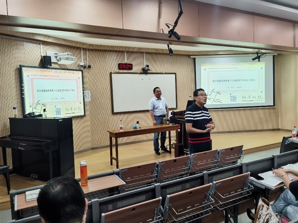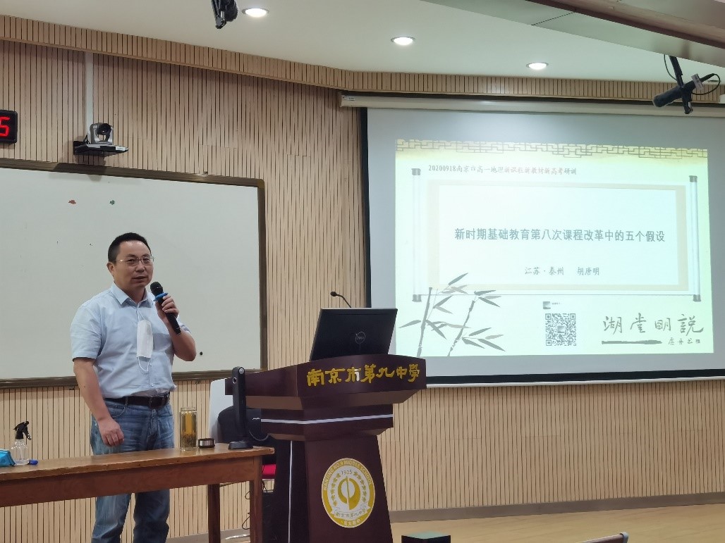 本次教研活动有幸请到了泰州市教科所胡唐明老师,胡老师作为新版鲁教版教科书的核心编写者,做了主题为《新时期基础教育第八次课程改革中的五个假设》的专业讲座。