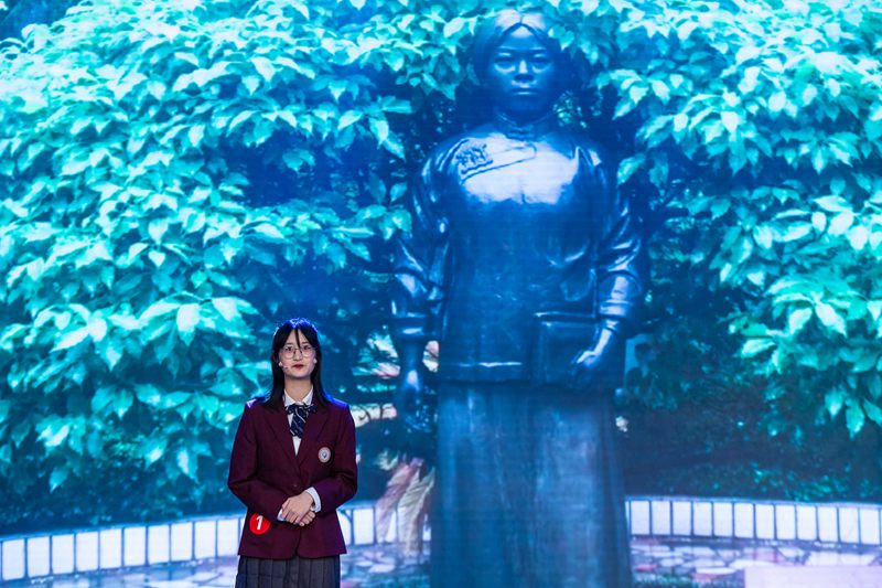 演讲题为《海棠花开,承继芳华——邓颖超的故事》,主要讲述了少年邓颖超立志救国,组织女学生走街串巷进行革命宣传讲演的故事,同时也表达了九中学子如今在争创“邓颖超班”的过程中将邓颖超的精神继承发扬,薪火相传的决心。演讲中穿插视频、音乐及短剧演绎,主讲人冯子卿同学声情并茂的讲述,以及饰演邓颖超的朱静研同学全情投入的演出,将听众带回“五四运动”那个激情燃烧的火红年代,深深为邓颖超自强不息、心忧天下的精神所打动。