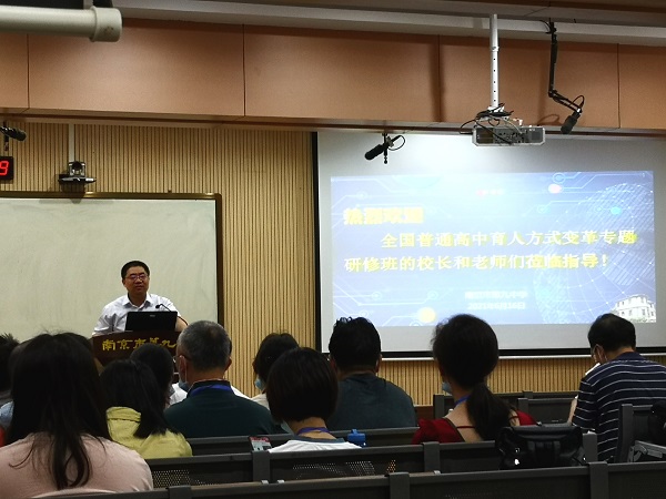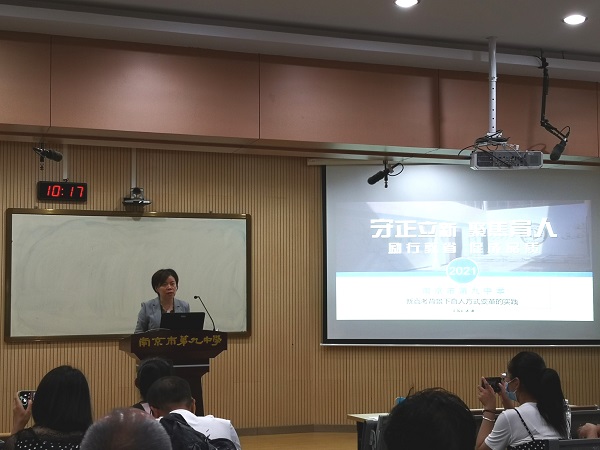 2021年6月16日上午,全国普通高中育人方式变革专题研修班一行一百余人来到九中观摩交流。研修班成员来自第四批新高考地区,全部为甘肃白银、四川成都、新疆石河子、江西南昌的高中校长、副校长和老师,他们即将于2022年进入新高考,此行主要抱着学习经验的目的。九中校长林啟红、副校长诸谦、陈晓健热情接待了研修班的教育同行。