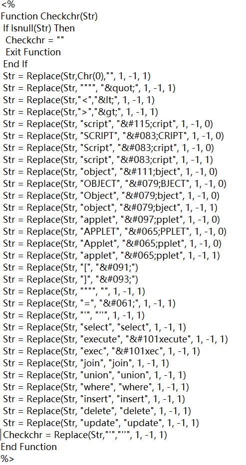 ASP最新SQL防注入过滤函数之用法例