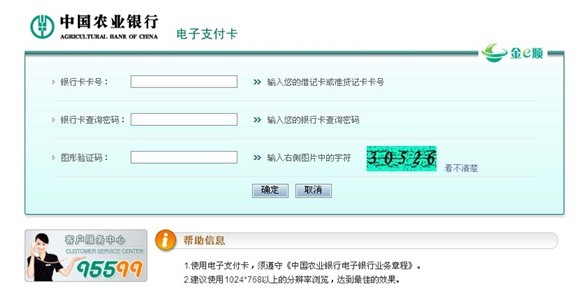 4.考生输入“借记卡卡号”、“借记卡查询密码”及“图形验证码”,点“确定”后进入电子支付卡申请页面,如下: