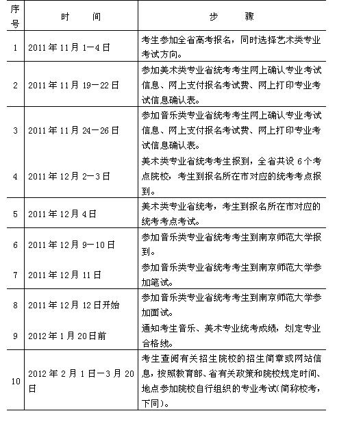 ②资格审核:2011年11月上旬,考生所在中学初审后报市、县(市、区)招办;由市、县(市、区)招办审核汇总后于2011年12月31日前报省教育考试院。