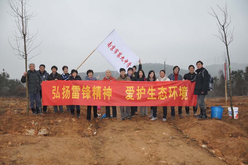 3月4日星期天,南京九中开展“弘扬雷锋精神,爱护生态环境”活动,集体到溧水农村义务植树,带上孩子和家人,让孩子从小也接受保护环境之教育