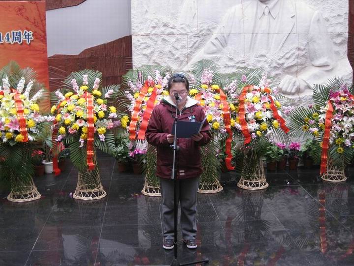 活动正式开始,主持人先介绍了出席活动的领导及来宾,各学校及单位代表向周恩来浮雕敬献了花篮。接着各校(单位)领导和梅园新村纪念馆王化许馆长发言。随后同学们欣赏了由梅园新村纪念馆讲解员,梅园中学,三江学院高职院,南京九中,东南大学土木工程学院,南京工业大学“周恩来班”,沪宁高速南京收费站带来的七项精彩丰呈的节目。其中,南京市第九中学带来的是由高一(10)班刘钰睿同学的诗朗诵《一月的哀思》。