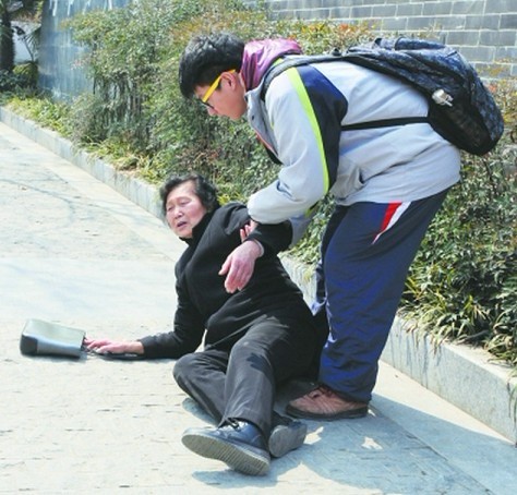 3月13日中午12:00左右,在南京市第九中学门口,一位76岁的老人突然腿疾发作,摔倒在地。该中学高二年级的程前在不远处见到后,立即上前把老人扶起来,“奶奶没事吧?”把老人扶起来之后,旁边另一位热心中年女子也前来问候,并建议把老人扶到学校门卫找个椅子休息下。老人被扶起来之后,稍微休息了一下,觉得已经无碍,向大家表示感谢。这一幕,被玄武区文化局的张全宁看在眼里,当时他正举着相机在拍一些街景照片,“前后就一两分钟的事情,我全拍下来了。”他告诉记者,程前比他离老人近,他想去搀扶的时候,程前已经做了,他就把整个过程记录了。 杨娟/文 张全宁/摄