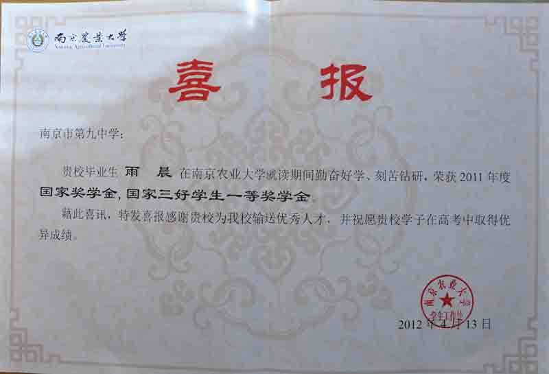 南京农业大学发来喜报