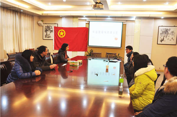 今天中午,林啟红书记和教工团支部全体团员在文艺楼一楼进行教育教学经验交流及老团员离团仪式。