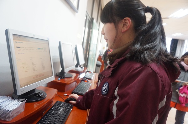 2016.1.26日上午9:00到12:00,下午2:00到5:00, 南京九中高一五班 傅辰格 周宇娟 马乐之来到了南京理工大学图书馆进行志愿活动。天气晴朗,来自高一五班的三名同学和高一六班的三名同学,一起走进了南京理工大学的大门,今天他们将要在图书馆里度过繁忙而又充实的一天。