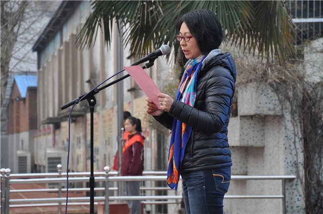 随后高三11班团支书尹玥代表邓颖超班发表了获奖感言。她说,此次获得邓颖超班是所有任课老师和同学共同洒下辛苦汗水的结果。在创建邓颖超班的过程中,同学们始终以邓颖超精神为指引,严守组织纪律、严于律己、艰苦奋斗、顽强拼搏。在这样乐观积极向上的班级氛围中,大家在班级常规、考试成绩等方面都取得了骄人的成绩。最后,尹玥同学向全体师生呼吁,学习伟人精神,做最好的自己,“共同振起精神,谋自身之进步,谋班级之进步,谋学校之进步!”