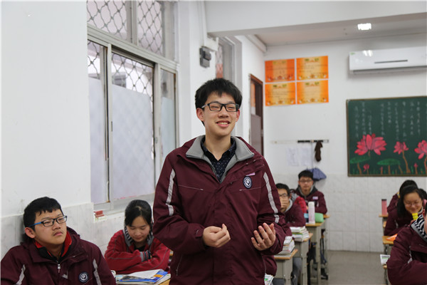活动的最后一个环节是现场互动。当问及高中同学时,五班的张师涵同学主动举起了手,于是登上了台。他朗诵了苏轼的《浪淘沙·赤壁怀古》。朗诵期间,他站在聚光灯下,手却没有一丝颤抖,而且声音稳当。虽然有一句话朗诵错了,但张师涵同学的这一份勇气和自信,值得我们学习。