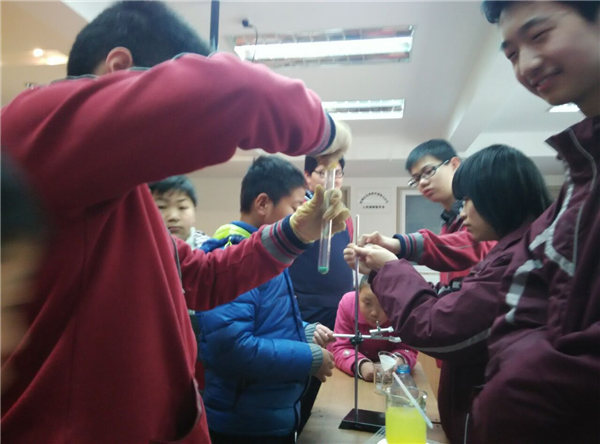 2016年3.6和3.13日,高一十班共18位同学分两批次来到了象山社区为小朋友进行辅导,身为化学社成员的邓世纪同学还将自己的工具带着,为小朋友们表演了化学实验,一群小朋友围在一起目不转睛的盯着,这可能是他们人生中的第一节化学课,会弹吉他的李佳琪同学,也特意把她的吉他给带上了,给小朋友们带来了吉他独奏,结束后也好不吝啬的教感兴趣的小朋友弹吉他,虽然有些小朋友很调皮,让同学们忙的焦头烂额,但在这个过程中同学们也培养了耐心,学会了如何和小朋友们相处,甚至玩熟了之后童心泛滥的很小朋友们比赛打乒乓球,结果身为高中生却打不过小学生,真的是长江后浪推前浪啊,此次活动让同学们收获很多,也成功的和小朋友们做起了朋友。
