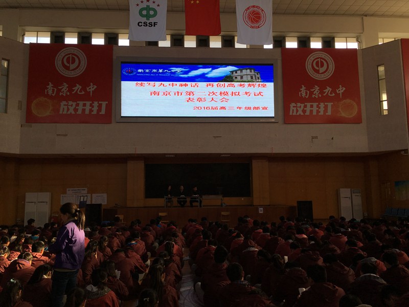 今天下午4点30-5点45,南京九中高三年级在体育馆召开了题为“续写九中神话,再创高考辉煌”的二模表彰大会。南京九中张恒柱校长、林启红书记出席此次会议。会议由年级部李代国主任主持。