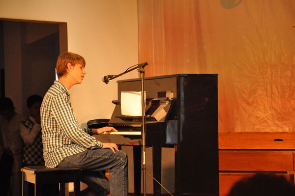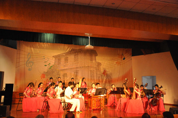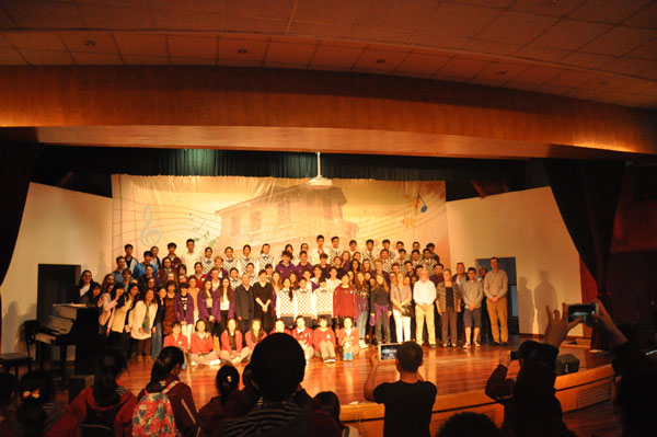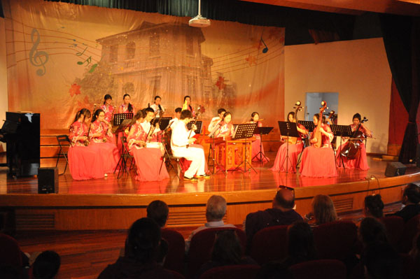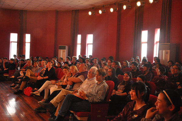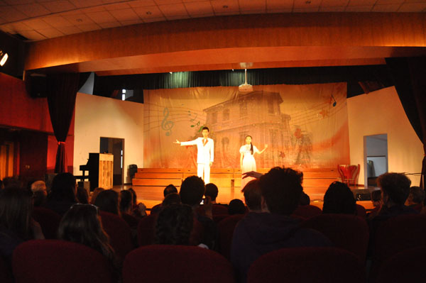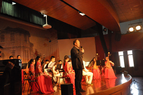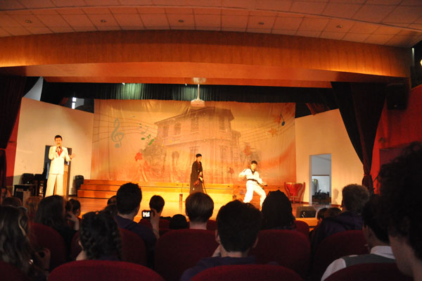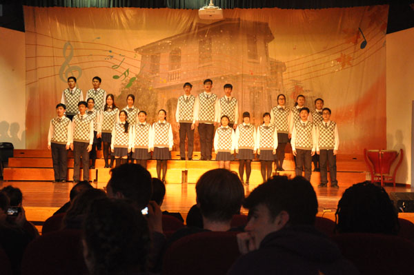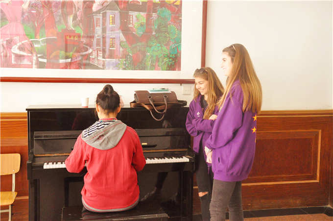 九中的文艺全国闻名,文艺演出当然成为了接待外宾活动中一个不可缺少的环节。在文艺中心张薇、杨芳老师和文艺班学生的精心准备下,九中文艺班的孩子吹拉弹唱十八般武艺都亮出来,既为代表团表演了特色鲜明的中国歌曲《茉莉花》、二胡齐奏乐《赛马》、又穿插了外国音乐和英国著名女歌手沙莎拉·布莱曼的Memory。最让英国代表团感到兴奋的是九中文艺班王梓同学演唱的《中国功夫》和他的伴舞张启雷等同学表演的武术,高亢的声音、精彩的武术套路让英国学生不断鼓掌。演出过程中,英国的两位同学主动要求进行了即兴表演了自演自唱,娴熟的钢琴演奏、悦耳的英语歌曲让我们领略了英国中学生的多才多艺。整场演出精彩纷呈,中英学生精湛的表演赢得了全场师生的尖叫。