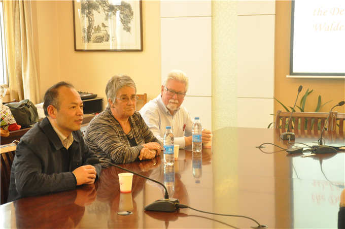 4月1日早上9:00,一辆载有英国师生的大巴驶进九中校园,校园里顿时热闹起来。九中校长张恒柱亲自到校门口迎接,他和友好学校的老师一一握手表示热烈欢迎。之后,九中24名接待家庭的学生来到文艺楼一楼会议室和英国学生见面。之前,两个学校的结对学生通过邮件和微信的方式进行了大量沟通,所以在见面之后大家并不感到非常陌生。九中的接待学生用熟练的英语和英国学生打招呼、交流,这让在场的英国老师连连夸赞,现场的气氛很活跃。