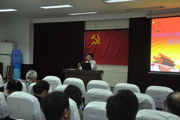 4月13日下午,南京市第九中学党总支在学校弘光楼四楼报告厅举行换届选举工作。学校176名党员中的164名党员参加了会议。玄武区教育局局长兼工委书记陈发山同志莅临指导。