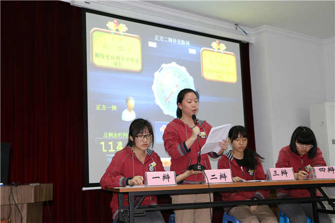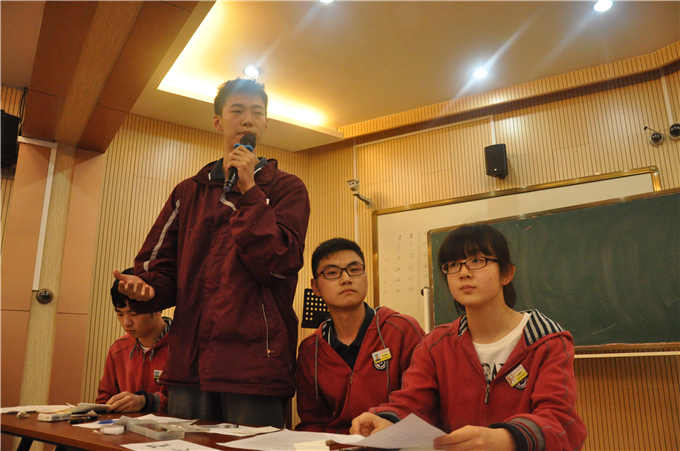 4月15日中午12时,南京九中科技文化艺术节第三届“震旦杯”文理辩论赛半决赛如期展开,弘光楼报告厅迎来了文科班的两支强队:高二(12)班和高二(14)班以及理科班的两支强队:高二(4)班和高二(5)班。双方辩题是“顺境和逆境哪个更有利于中学生的成长”。