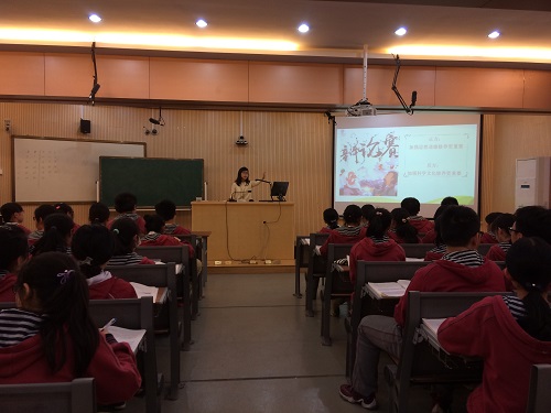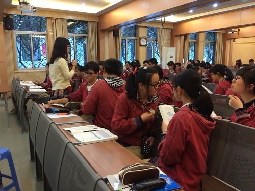 2016年5月13日上午,广州近20位政治教师来我校参观学习。上午第三、四节课,在震旦楼106观摩了我校潘菊芬和严金淑两位老师的展示课;中午在教师阅览室,老师们一起评课,交流政治课教学经验,相互学习。