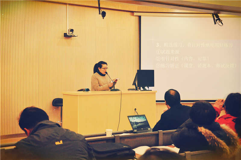 最后,教研员袁老师作了重要的讲话,他以详细的数据表扬了考试先进和进步明显的学校,布置了下学期的计划,具体安排了历次教研活动的内容,提出了每个阶段的复习思路与方法。同时,袁老师从四个角度介绍了复习策略,要求全市教师注重分类推进、注重分层推进、注重整合考点与教材、注重实战训练。