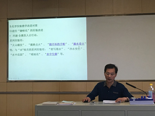 5月17日上午8点30分,九中化学教研组长李虎山老师在13中做《中学化学课堂实验教学的现状与应对方法简说》的讲座。李老师从化学实验教学的价值和目的出发,指出现在化学实验教学的现状和问题,并提出化学实验教学的改进对策。
