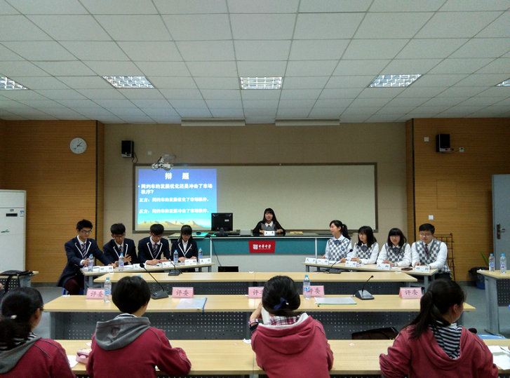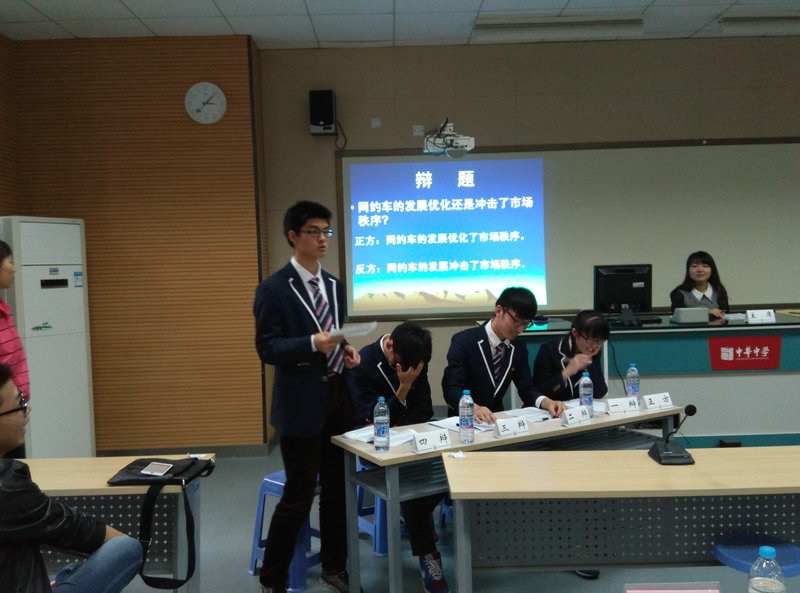 2016年5月22日下午14:30,南京九中代表队如期来到中华中学赴复赛之约,脱去了初出茅庐的稚嫩,这次我们南京九中代表队扮演了反方的角色,与正方江浦中学代表队就“网约车的发展是优化还是冲击了市场秩序”展开了激烈却不失风度的辩论。经过一番苦战,南京九中代表队赢得了“南京市五四辩论赛”四强的一个席位,追平了九中历史最佳战绩!