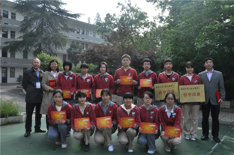 为此,孙中山纪念馆在南京九中设立了“孙中山班”和“孙中山奖教奖学金”,奖励表现优异的班级和师生。在2015-2016学年里,高三7班和高三14班以孙中山先生为榜样,在班级的常规管理、班集体建设、学习生活等方面均积极向上,班集体凝聚力强,成果显著,符合“孙中山班”的评选条例的要求,经高三年级部推荐、校评审小组和孙中山纪念馆共同批准,决定授予高三7班 和高三14班“孙中山班”的称号,同时,授予这两个班级的班主任苏太盛老师和黄燕老师“孙中山育人奖”的称号。唐思琦、卢希雅等12名同学,在德智体等方面表现突出、取得了优异的成绩,符合 “孙中山奖学金”评选条例的要求,经高三年级部推荐、校评审小组和孙中山纪念馆共同批准,决定授予他们“孙中山奖学金”。他们是: