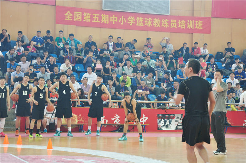 开班仪式结束后,黄教练带领南京九中男子篮球队的15名队员开始了培训课程。南京九中多年来在发展学校体育活动,推动群众性体育活动广泛开展,增强中学生体质方面取得显著成绩。在发展体育传统项目,提高篮球办队水平上也卓有成效,近年来,在国际、国内中学生篮球赛中荣获多项冠军和好成绩。为高校和专业队输送了一大批体育后备人才。今天配合黄教练培训的队员们就刚刚在2015-2016中国高中篮球联赛中获得全国季军。