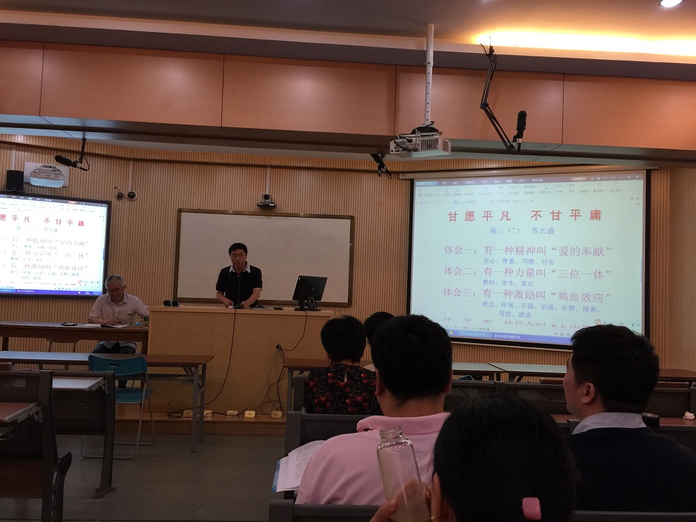 7月9号上午南京九中在学校报告厅举行了2016年高三教育教学工作会议,我校2016届和2017届新老高三全体教师欢聚一堂,共同研讨高三教育教学工作。会议由教科处主任张德举老师主持,出席会议的学校领导有林啟红书记、诸谦副校长。会上2016届高三年级部主任李代国对2016届高三工作进行了系统的总结,他指出2016年我校高考取得了历史性的突破,高考双达线人数名列全市第4名,超过市局下达的指标102人,居全市第一。本届高三教育教学工作成绩的取得与我校先进的办学理念和办学模式是密不可分的,城市高中模式成就了九中辉煌;与2016届优秀的教师团队以及教师们高超的教育教学水平、艰苦奋斗的作风、乐于奉献的精神密不可分的;与年级部科学管理、精细管理、全员管理密不可分。2016届高三教师陈萍、于志艳、顾芳、苏太盛、李钟莹、周晶晶、魏亚梅、吴紫敏、徐文晖分别介绍他们备课组、班级管理、学科教学方面的备考经验。2017届高三年级部主任吴昊就下届高三工作打算作了表态性发言。最后,林啓红书记代表学校进行会议总结,她充分肯定了2016届高三工作,对2016届高考取得历史性突破表示祝贺,对2017届高三工作提出了要求和建议。