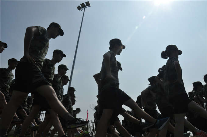 枯燥疲惫的训练与持续的高温暴晒天气成了对同学们而言最严峻的考验。烈日当空,汗水顺着他们的脸颊流淌,湿透了衣衫,然而没有一位同学叫苦,没有一位同学喊累,摆臂如风,出腿似箭。跑道上的矫健身影,连缀成一道美丽的风景线,骄阳下的嘹亮口号,汇聚成一曲青春赞歌。