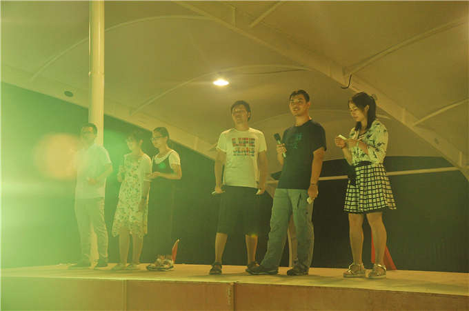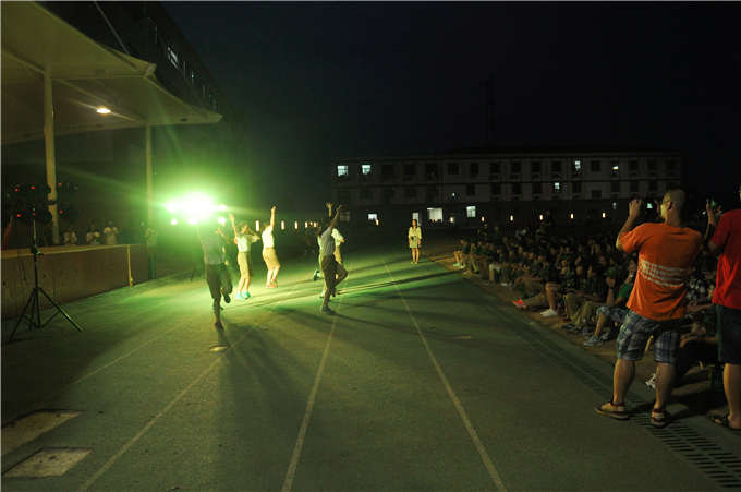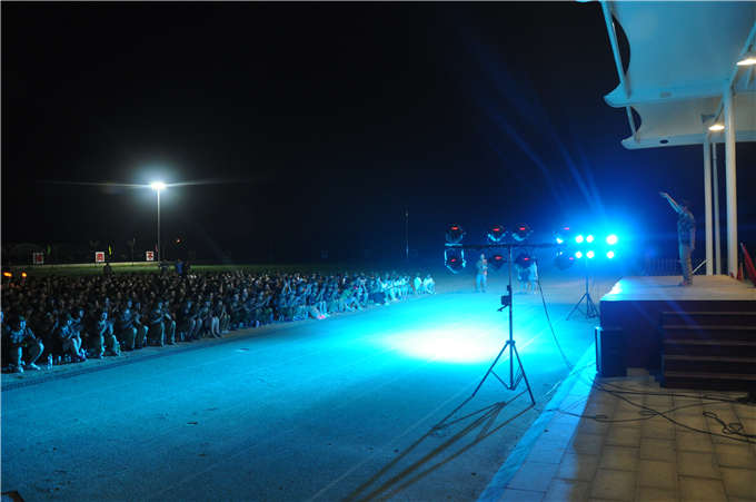8月19日晚,在一天辛苦的训练之后,同学们围坐在草坪上,欢聚一堂,欣赏精彩的文艺汇演。