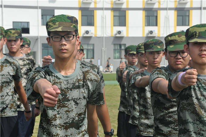有的同学因天气炎热中暑晕倒,但去荫凉处稍作休息后又主动要求归队训练;有的同学因反复练习拉伤韧带或磨破脚板,但简单包扎后又重新出现在了队伍中。他们用实际行动践行着操场上醒目的标语“流血流汗不流泪,掉皮掉肉不掉队”,坚忍不拔、斗志昂扬!