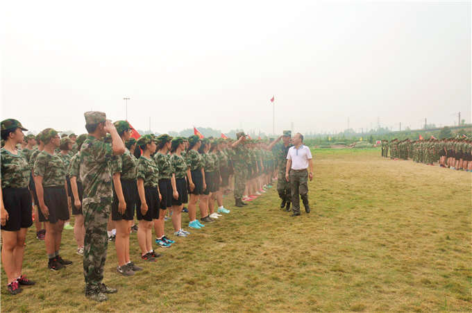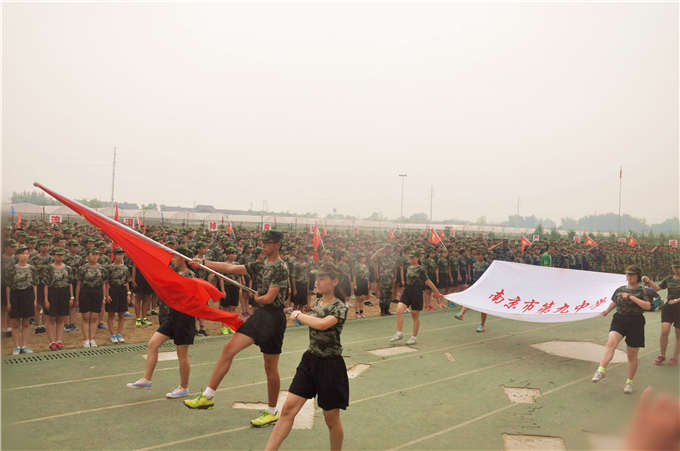 8月15日早上八点,九中700多名2016级高一新生拎上行囊,集结出发,前往江浦永宁多米基地,十点,同学们先后来到基地,放下行李后,立刻在操场整队集合,举行简单但庄重的军训开营仪式,会上,诸谦副校长向同学们提出了殷切的希望,希望同学们在接下来的训练中不怕吃苦,遵守纪律,培养习惯,磨砺意志,同学们也在教官的带领下振臂高呼,为自己鼓劲加油。开营仪式结束后,为期五天的军训正式拉开了帷幕。