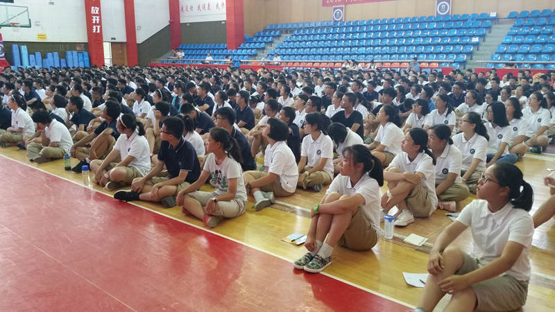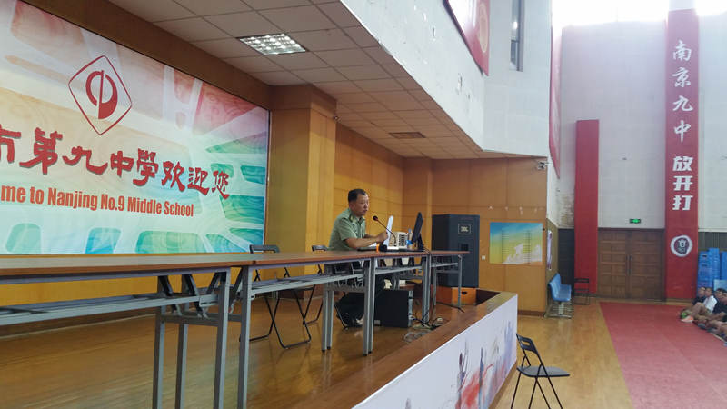 2016年8月23日下午,南京九中邀请了南京政治学院的袁周老师开设了一场名为“应对复杂安全形势,深化国防军队改革”的国防军事知识讲座,700余名高一新生齐聚体育馆二楼,听取了这一讲座。
