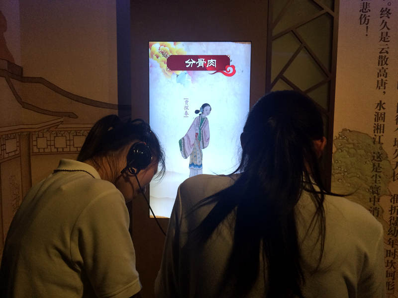 云锦馆中,色泽明丽,绣工精致的云锦织品令同学们啧啧称奇。红楼梦馆中,关于曹雪芹生平及家世严谨的考证、有关《红楼梦》人物关系与故事脉络详实的介绍使同学们获益匪浅;“海棠诗社”“归彼大荒”的布景引来了不少同学驻足围观;利用多媒体呈现的“金陵十二钗”判词更是吸引了不少同学停下脚步,戴上耳机凝神聆听,沉浸在文学之美中。