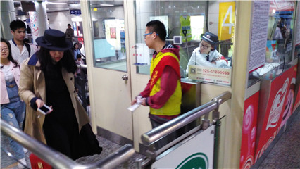 地铁,是人们日常出行最快捷的交通工具之一。南京的地铁被人评价为“最具有人文气息的地铁“不仅仅体现在每个地铁站充满特色的南京文化壁画,更有那些辛勤的志愿者黄马甲们为人们的出行提供人性化的服务,九中高二3班的同学也参与其中。