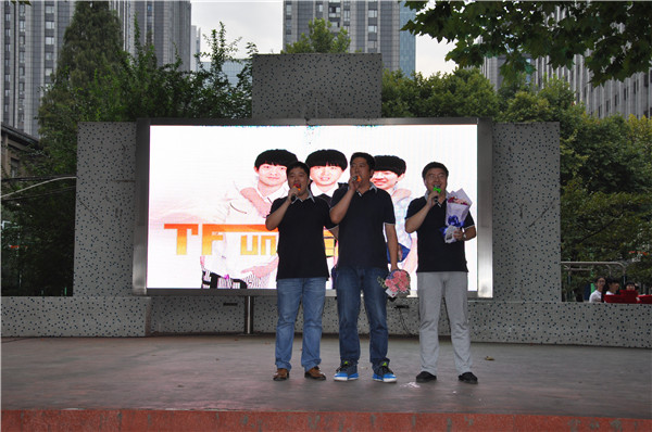 在同学们热烈的掌声中,高一、高二、高三的年级组长封平强老师、张翼飞老师、吴昊老师组成了一个组合,在这个欢乐的日子里一展歌喉,一首《光阴的故事》获得全校师生的一致好评。